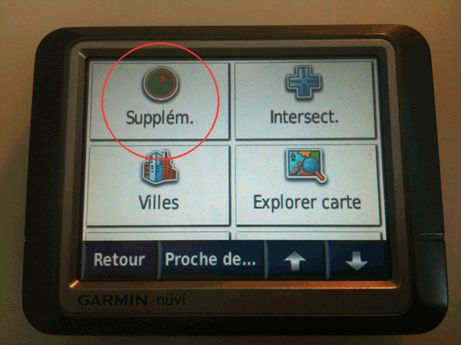 5/ Appuyez sur la rubrique 'Supplém.' (drapeau rouge dans un rond vert).
